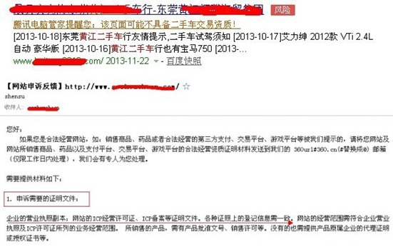3、如果网站出现安全警报时,就会被360或者腾讯安全管家给拦截掉,并提示危险警报,估计浏览者遇到这样的网站,都会敬而远之咯。要申诉解除危险信号,备案信息又起到重要作用了。