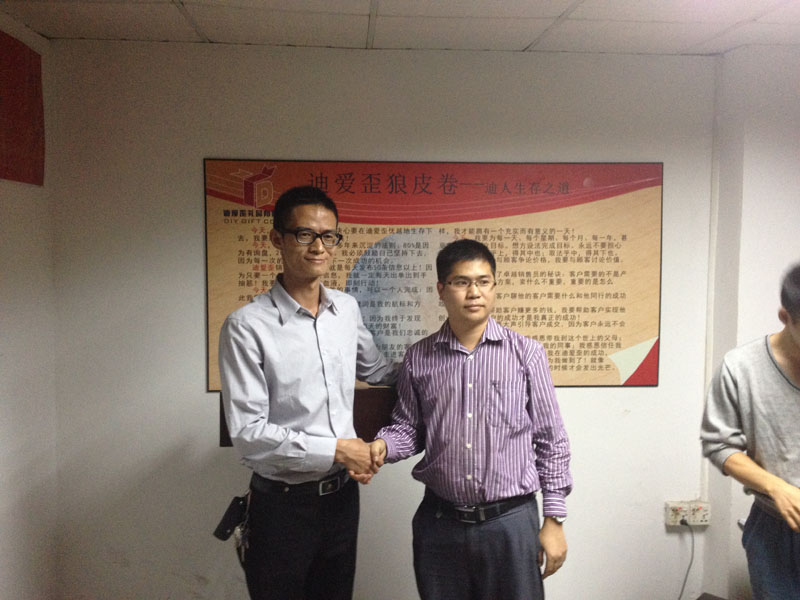 今晚公司房总和梁经理受邀迪爱歪礼品公司传播网络营销知识,激情、用心、虚心交流,得到迪爱歪公司董事长粱先生的好评,我们公司2位专业优化营销专家得到迪爱歪全体同事的热情款待,当然我们公司房总和梁经理也毫无保留地传授网络营销优化真谛!我早上问了房总,为啥您亲自上战场,原来房
