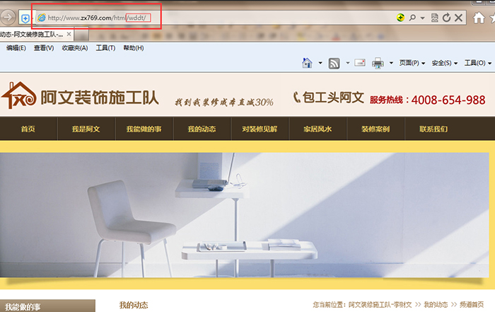 5、把整个网站html静态页面和首页进行生成,返回网站首页刷新点击我的动态,就可以看到修改的URL名称了。如图4