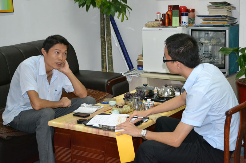 思恩物业负责人与动点梁工洽谈合作中