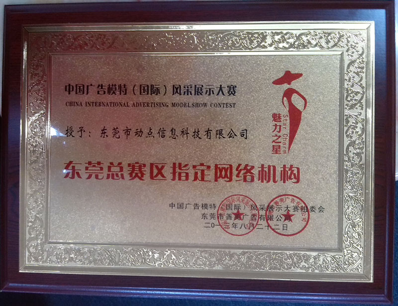 祝贺中国广告模特(国际)风采展示大赛授予动点网络东莞总赛区指定网络机构