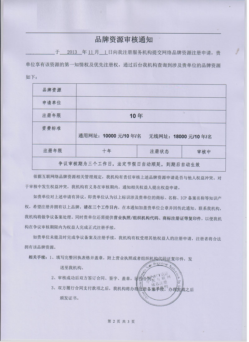 此类信件多为某域名注册公司发出,以这种形式让广大用户感觉自己的品牌受到威胁,甚是感觉自己侵犯了别人的商标权,然后通过他们注册相关的中文域名或无线网址之类的。这是营销!这种手段在中文域名诞生时就非常普遍,无非现在换了一个称号”品牌资源“。
