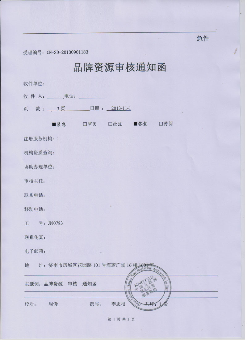 一般收到品牌资源争议审核通知函的邮件资料如下