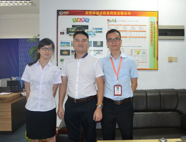 7月4日,铭优科技网站负责人陈小姐通过网络找到我司咨询做网站,陈小姐比较直接,她说已经对比了很多家东莞网络公司,希望网络公司能安排技术人员到其公司商谈网站事宜。要求技术人员上门商谈,这正是我司的一大特点,因为我司是一个技术型公司。受到陈小姐的邀请,我司叶工和梁工利用星期六下午休息的时间到铭优科技商谈网站事宜。