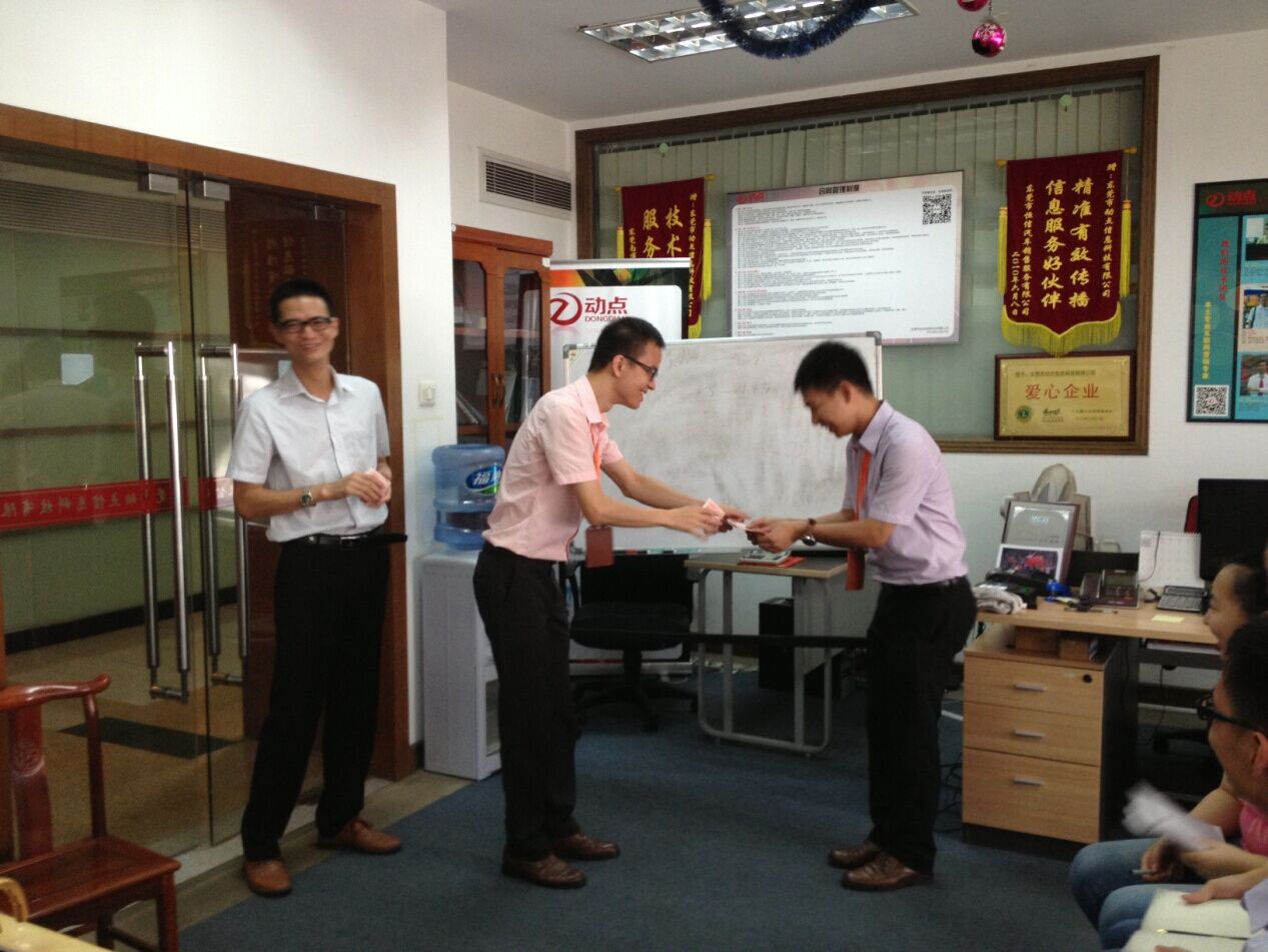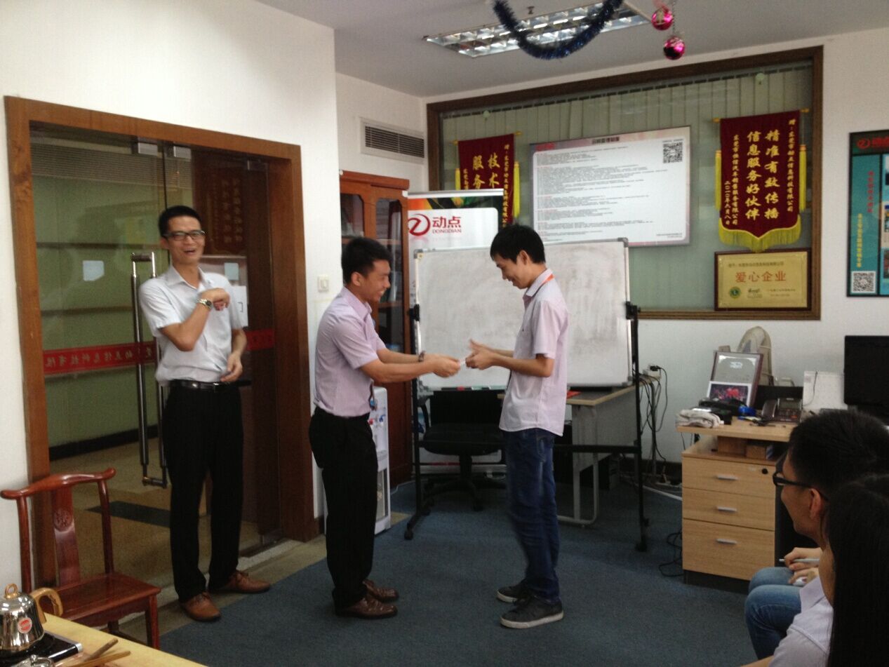 在7月23日当天的早上,动点全体员工开展了优秀员工表彰大会,奖励这月内表现突出的4位优秀员工,给他们颁发鼓励奖励。