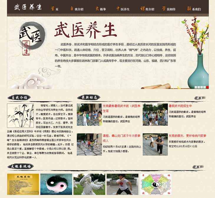 网站版面古色古香,以浅黄色为主色调,显出健康人的皮色,突出武学养生和中医养生的特点,更能看出中国武学医学文化的源远流长。