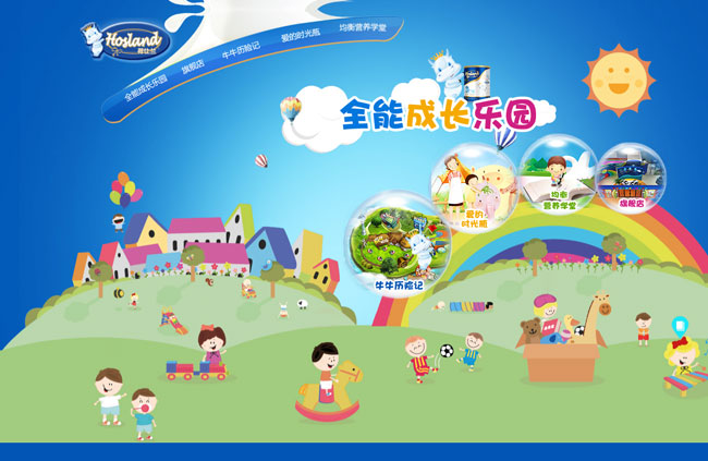 荷仕兰全能成长使用:全站Flash制作,展现出富有活力的儿童成长乐园。