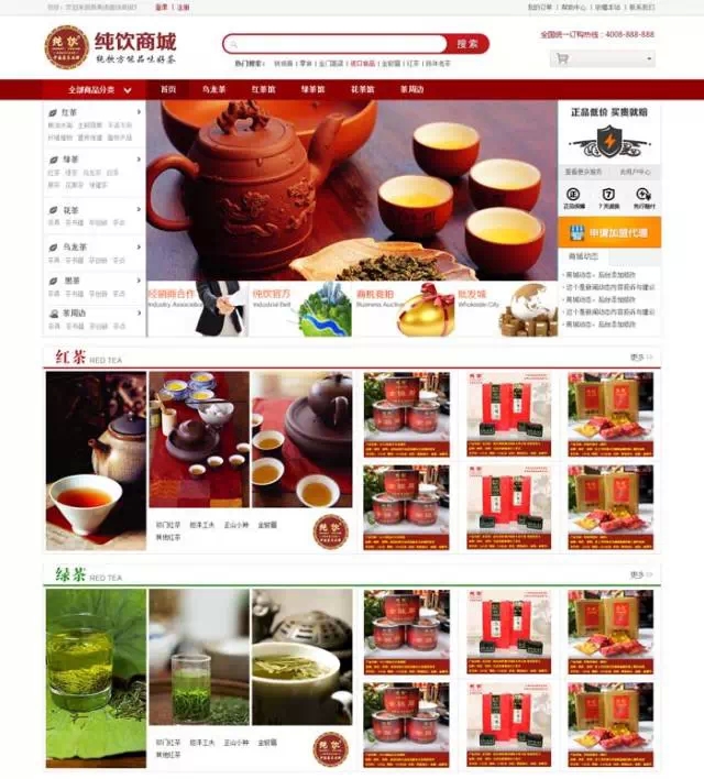 纯饮茶业官方商城版面展示: