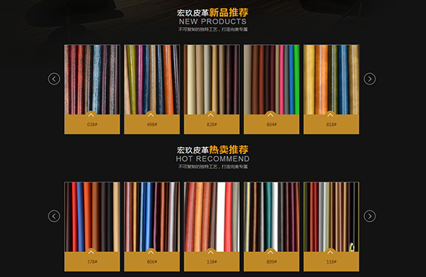 整个网站采用的是半透明的黑色格调,隐约可以看见背景为皇室装修图,彰显了贵族气质。整个网站的格调烘托出来的气质是高雅、与众不同、庄重,切入了宏玖皮革核心气质。