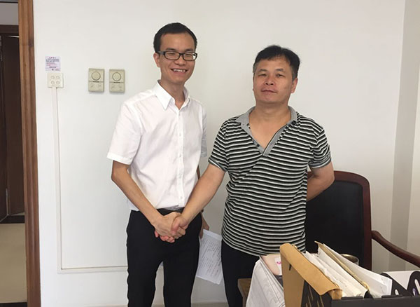 我司动点梁工与东莞市佛教协会陈先生合影留念
