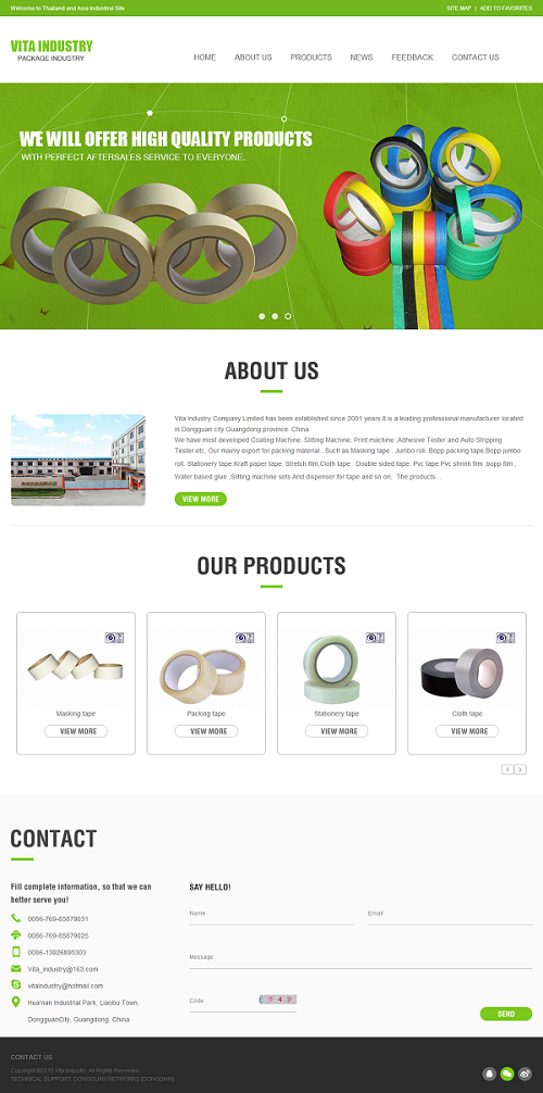 外贸型网站针对的客户群体是国外友人,而国外的标准大多以简为美,越简单,越受他们的青睐。泰亚实业的网站设计结合国外审美标准,直接主动地将产品推送到客户眼前。绿色的元素则是为了对顾客起到暗示作用,泰亚实业的产品材料健康无毒。