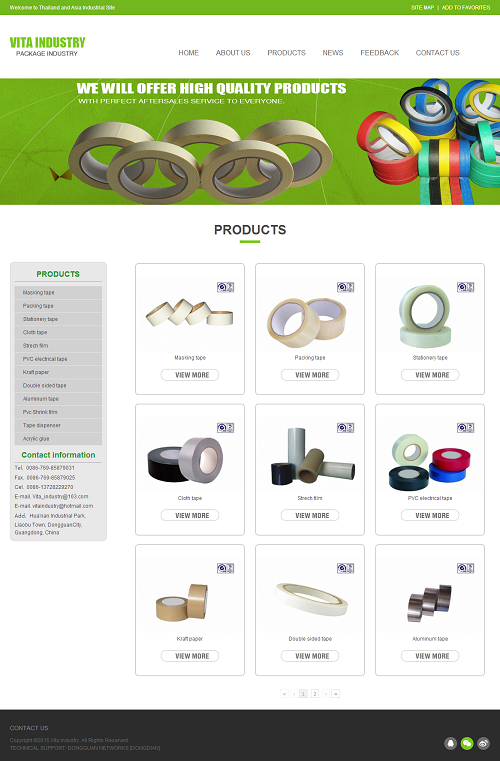 我们有发达的涂布机,分切机,印刷机,不干胶机、自动脱模tester.etc,我们主要出口包装材料。如掩蔽磁带。大卷。BOPP封箱胶带,BOPP大卷。文具胶带,牛皮纸胶带,拉伸膜,布带。双面胶带。聚氯乙烯胶带、聚氯乙烯收缩膜、丙烯酸胶、机用胶带等,产品主要出口到美国、美国、欧洲、非洲、澳大利亚、中东、亚洲等地区。