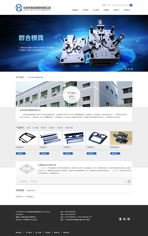 群合模具是一家塑胶模具制造有限公司,中、英品牌型网站对内能建立国内良好的品牌效果,对外能为企业提供多一种销售渠道,让群合模具走向世界。