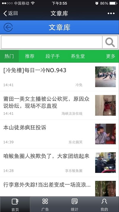 除了转发文章可以为自己的企业做宣传以外,广告神器还做了一个“亲民”功能。广告神器还提供热门文章搜索功能,既是您可以搜索到点击量高的、新的文章,免去了您苦苦需找高质量文章的痛苦。不需要自己写文章、也不需要自己找文章就能为自己的企业宣传?现在让我们来看一下实际的效果。