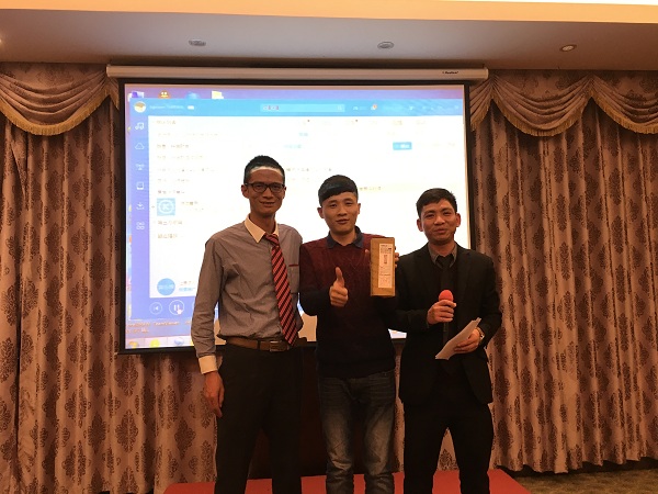 与此同时,在台上我们的主持人也分别邀请了我们公司的营销总监梁国源先生、技术部经理丁浩祥先生上台对他们进行了采访,分享他们这几年在动点的所感所悟。