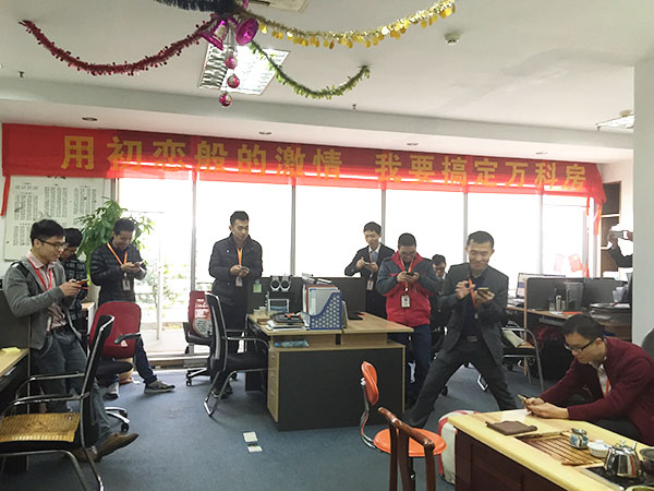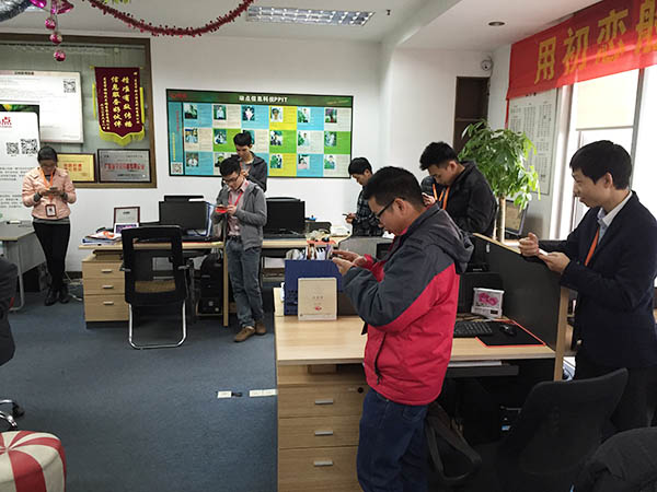 另外,作为东莞一家技术型的网络公司,与时俱进是非常有必要性的。除了发实体新年红包外,我们还顺应了时代的潮流,增添了一个微信抢红包的活动。这活动充分的调动了员工们的积极性,很好的锻炼了员工们的眼力、手力以及协调力,发扬了动点积极进取、不甘人后的精神,并现场培养出了一支“抢红包大军”。