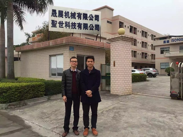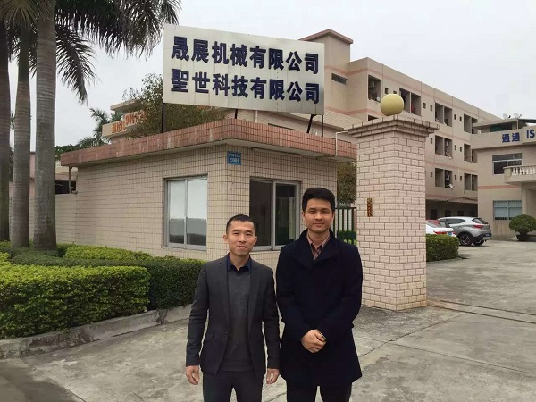 我司技术房工(左)与晟展机械莫经理(右)合影