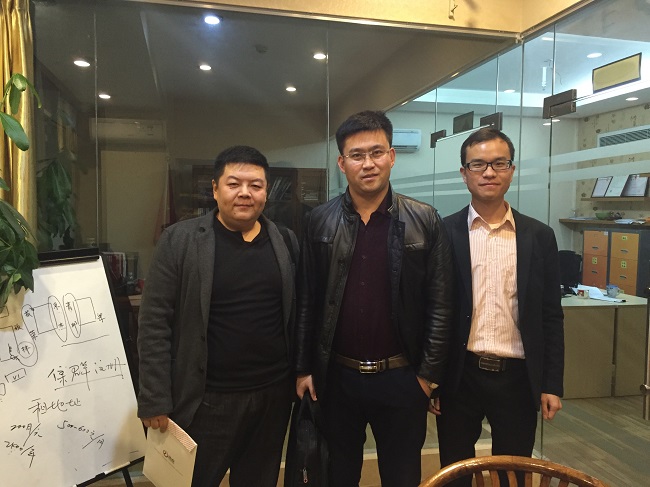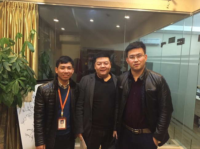 我司网站程序员叶工(左)与华盾电子科技的王总(中)、李总(右)合影