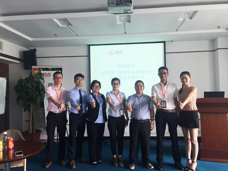 【动点网络 讯】2016年6月7日,品置地产连安源董事长一行莅临我司考察交流,我司动点网络与品置地产集团拥有长期的合作伙伴关系,先后在品置地产集团旗下东莞房源网门户网站开发,东莞房源网APP开发、东莞房源网VI设计、商标注册、集团VI设计、服务器租用、400电话(4009692580)办理等项目上合作。本次考察交流,连安源董事长就品置地产集团旗下东莞房源网APP的开发以及后续的工作安排上进行了深切交流并提出了相关的建议。
