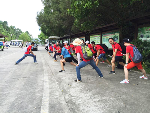 房总带领大家做登山前的热身