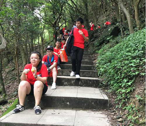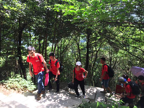 接着,登山活动正式开始,同事们在登山过程中谈笑风生,聊工作、聊生活,聊得不亦乐乎。在登山过程中,同事们相互扶持,坚定不到山顶非好汉的信念,虽然历经辛苦、酸累,但是后大家全部都到达山顶,没有落下一个伙伴,也没有一个伙伴放弃。