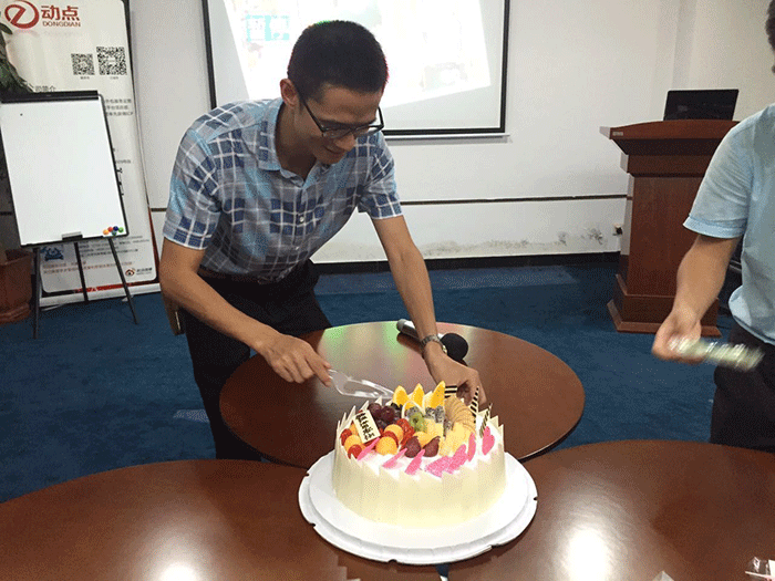 为弘扬企业文化,让每一位员工感受到动点集团大家庭的温暖,表达公司对每一位员工的点滴关怀,我司动点网络在今后会为每一位员工送上生日蛋糕,共同庆祝。2016年8月1日,是我司房总生日,我司企划经理做了精心的准备。利用晚上下班之际,同事们空闲之余,同事们相聚会议中心,共同庆祝房总生日快乐。