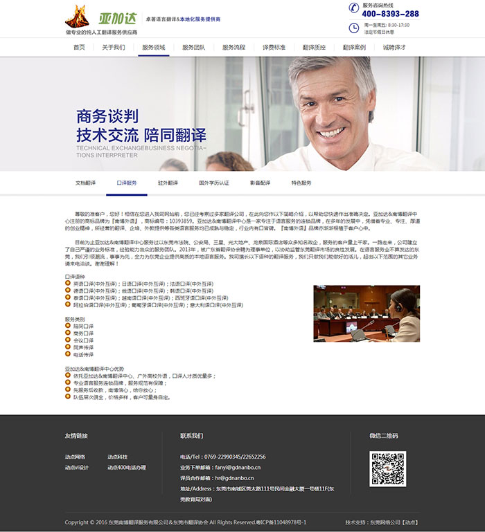 【动点网络 讯】2016年8月15日,东莞市亚加达教育投资有限公司(以下简称“亚加达”)官方网站www.fanyigs.cn正式上线运行。网站在以权威人工翻译平台为目标定位,全面结合客户要求为导向的基础上,并在我司动点网络网页设计师制作下,网站的风格和效果深受客户认可。