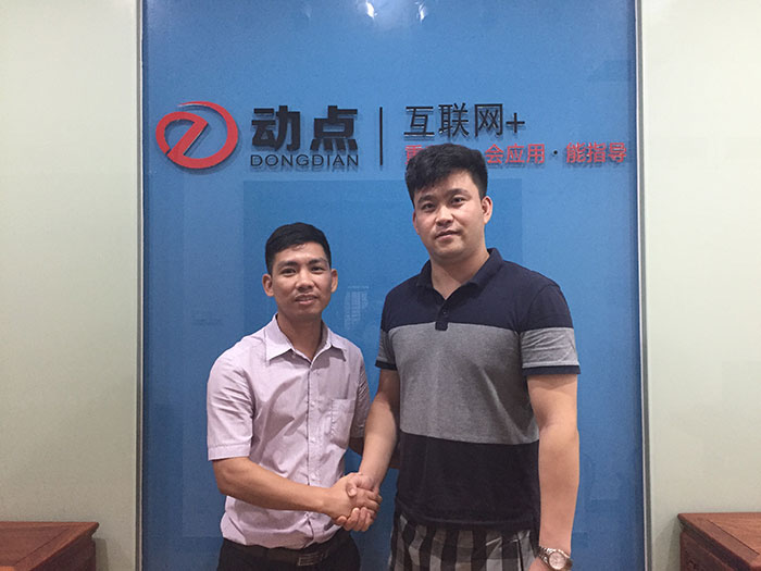 我司动点网络叶工(左)与华盾科技李总(右)合影留念