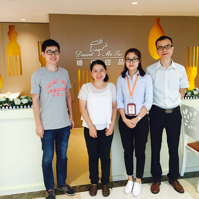 糖记甜品周总监(左一)、陈小姐(左二)与我司动点网络骆工(右二)、梁工(右一)合影留念