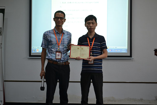 临近大会结束阶段,由我司房总对网络部陈工发起正式任命,聘陈伟乐先生为我司动点网络技术经理一职并颁发聘用函,陈经理两年多来,为我司动点网络在技术攻关上一直默默付出,孜孜不倦,之后由陈经理发表就职讲话。