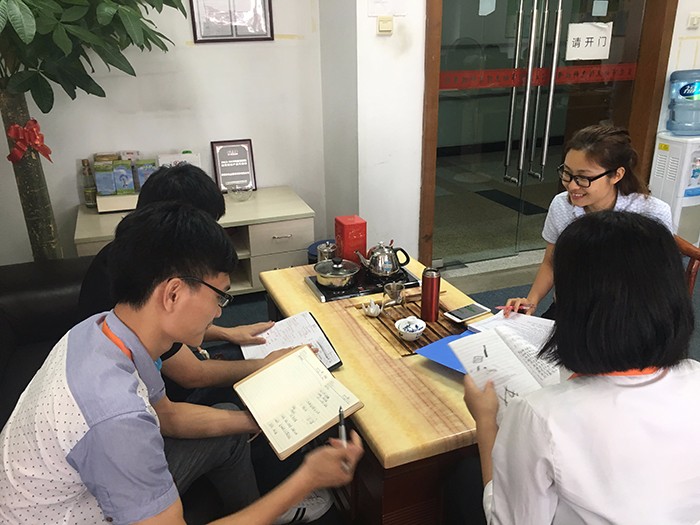 在培训过程中,售后同事角色互换,相互扮演工作人员与客户。大家在扮演角色同时,也总结平时一些实践案例的需要改进的地方。骆主管也结合典型售后案例,深入浅出讲解如何与客户进行有效沟通,如何化解客户刁钻售后问题以及如何与客户建立良好关系等等。