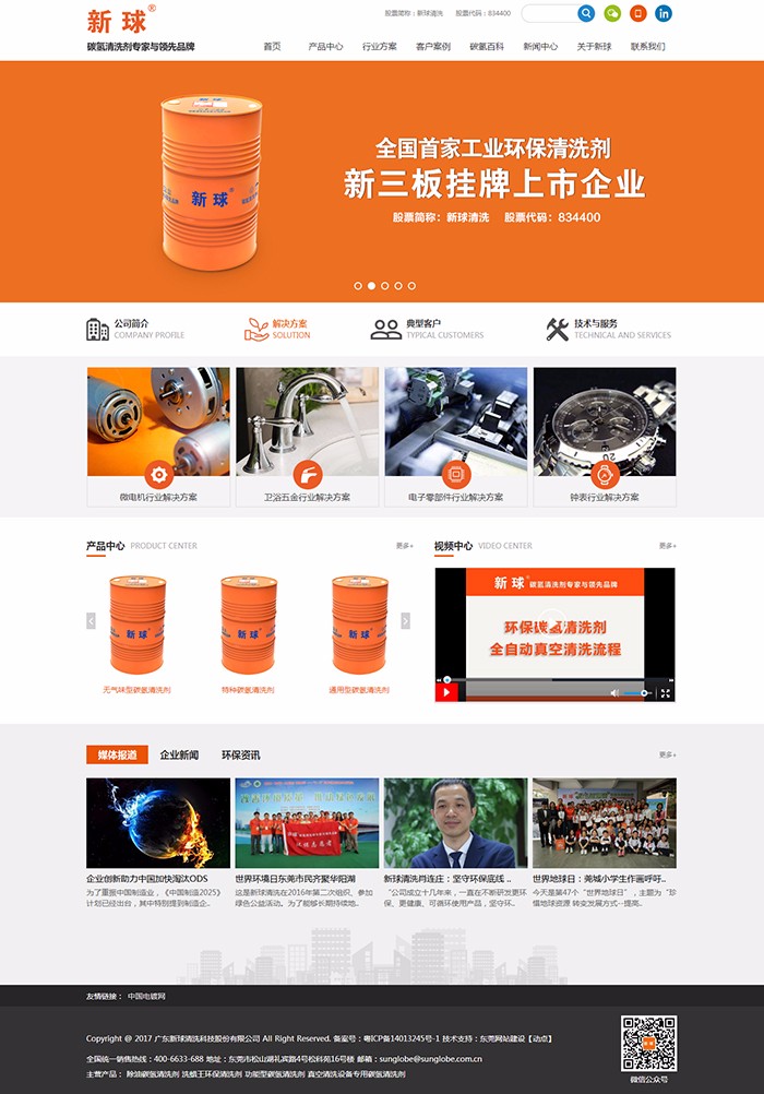 【动点网络 讯】2017年7月25日,广东新球清洗科技股份有限公司(以下简称“新球科技”)品牌官方网站(http://www.sunglobe.com.cn/)正式上线。网站建设期间的过程中都进展得非常顺利。