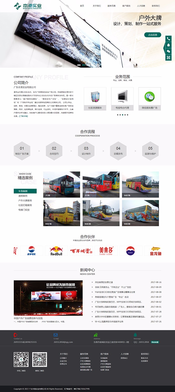 广东本港实业有限公司是专业代理公交车车内、车外广告媒体的综合广告公司。目前拥有东莞市多个镇区及部分跨镇线路共计700多台公交车车内外的广告媒体发布权。是一家长期秉承以“客户服务完善性”、“媒体发布广泛性”、“创意设计独特性”和“广告制作专业性”建立优质特性品牌的公交媒体公司。
