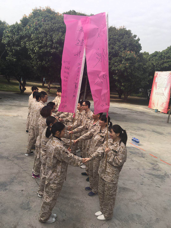 户外素质拓展训练以激发个人潜能、促进团队合作为活动核心,参训员工以随机组合的方式组建2个团队,各团队要求在规定时间内自行设计队名和口号,并选出队长,带领团队集思广益,打造各自独特的团队文化。