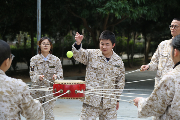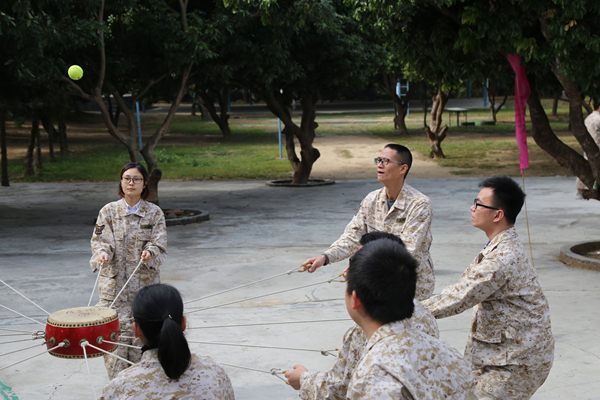 活动中,动点人体验了无轨列车、击鼓颠球、汉诺塔解密、跳出真我和绳索画圆等素质拓展项目。