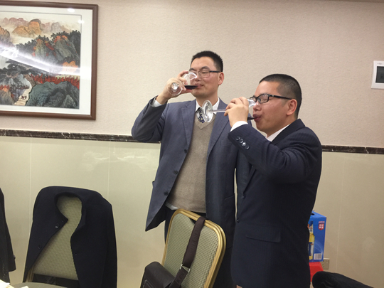 电商部刘金华副总和吕帆经理举杯畅饮