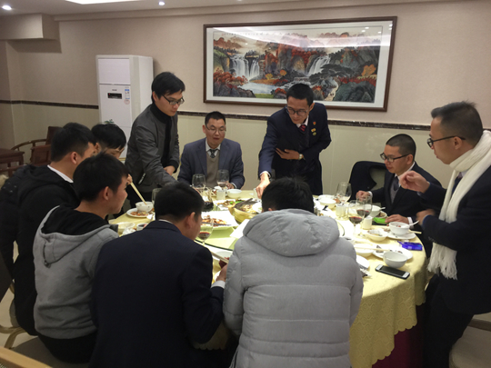 动点总经理房呈防与员工一起品尝美食