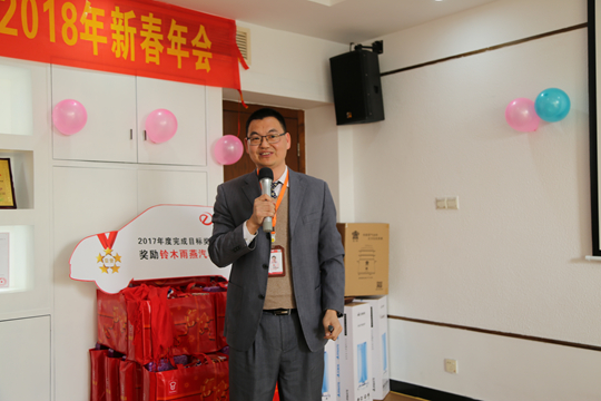 紧跟着,由刘金华副总和吕帆经理代表电商部上台做2017年工作总结与2018年工作目标报告讲话。