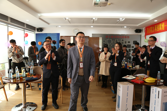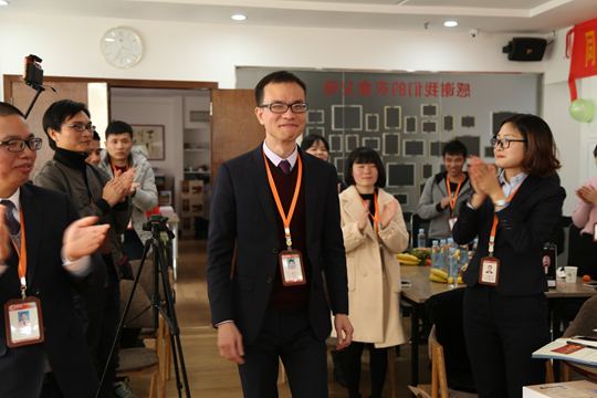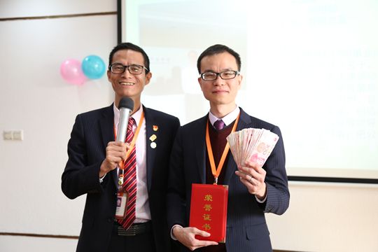同事们以热烈的掌声恭贺网络部梁国源总监上台领奖