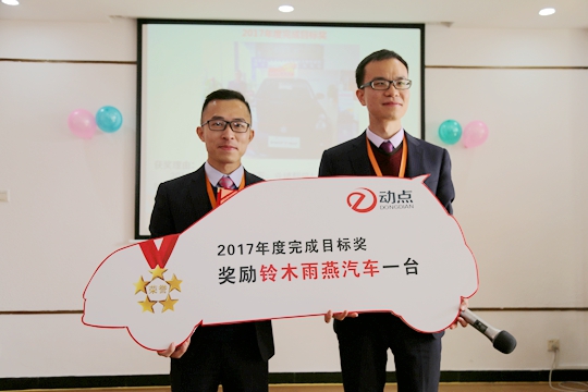 动点信息科技有限公司2017年度完成目标奖由网络部南楠经理与网络部骆阿林经理获得!