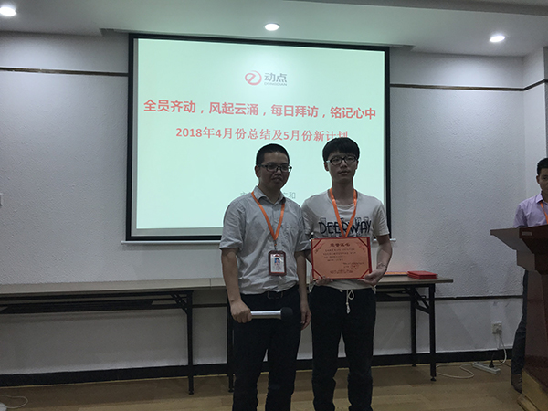 软件开发工程师张国辉表示,这是进入动点后第二次获奖,希望在今后的工作中继续努力,与同事们共同进步。