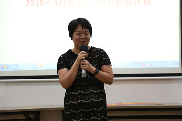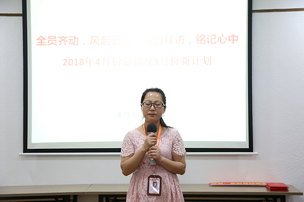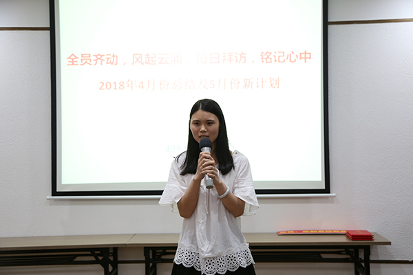 紧接着是由电商部运营主管谢斐、运营经理吕帆、副总刘金华做4月份的工作总结以及5月份的新计划。