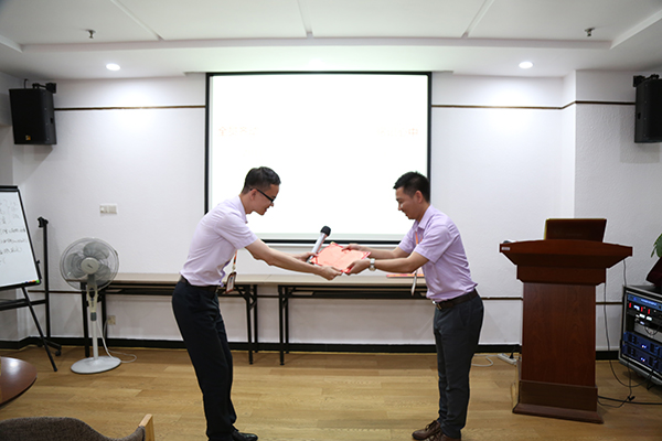 紧接着是4月服务之星的颁奖典礼,经过全体同事的评选,最终获得服务之星的人选是软件开发工程师张国辉,由房总亲自为服务之星张国辉颁奖。