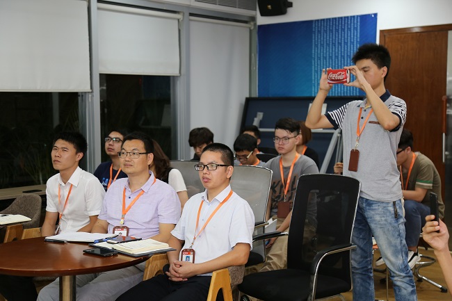 同事们在津津有味的聆听着获奖者的感言希望从中吸取养分