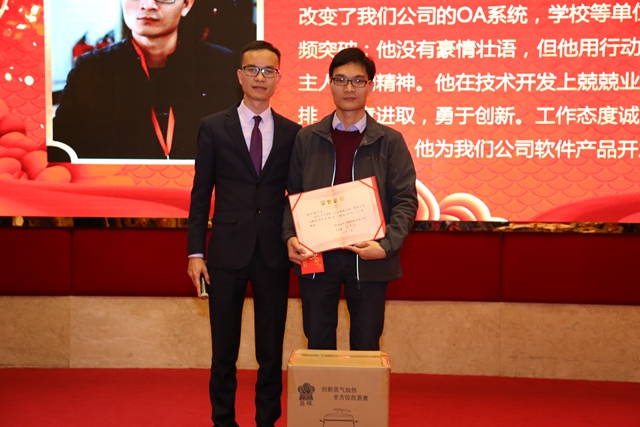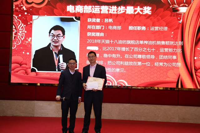 刘副总(图左)为吕帆(图右)颁发电商部运营进步最大奖