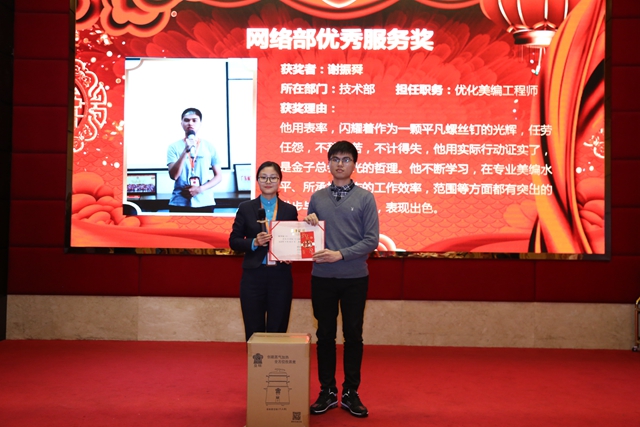 骆经理(图左)为谢振舜(图右)颁发网络部优秀服务奖
