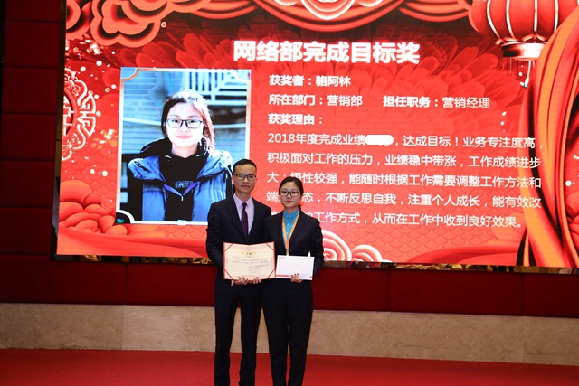 大会在公司总经理房呈防先生精彩而真情的献词中拉开了序幕。随后,房总带领各部门经理以及员工上台作2018年工作总结汇报。总结2018年的收获,以及对2019年的目标。
