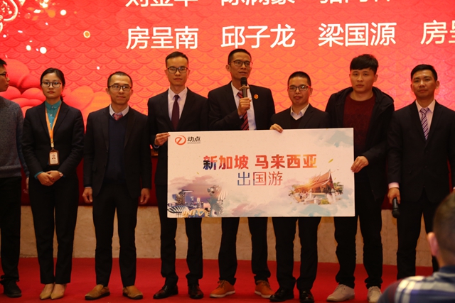 狗年已展千重锦;猪岁再登百步楼。告别难忘的2018,迎来全新的2019;回首8年奋斗路,展望动点新前程!2019年1月28日,我司在东莞湾畔酒店举办主题为《努力奔跑,继续追梦》2018年度工作总结表彰大会暨2019年新春年会。年会第一章是对2018年工作的总结以及对2019年的期望,年会第二章是对2018年表现优异的同事进行表彰,以及抽奖、游戏环节。动点一家人共同感受年会的温馨氛围,共同期待公司在新的一年里向着更高的目标展翅翱翔。