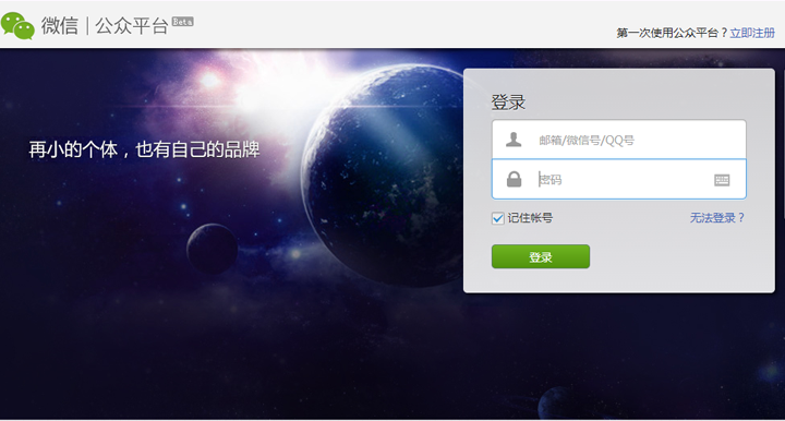 图一 微信公众平台页面