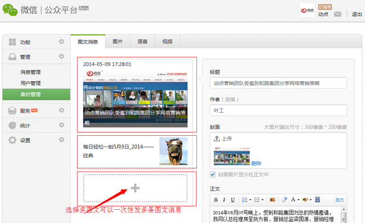 图二1-3 订阅号和服务号都可以选择多图文(一次性发多条信息)